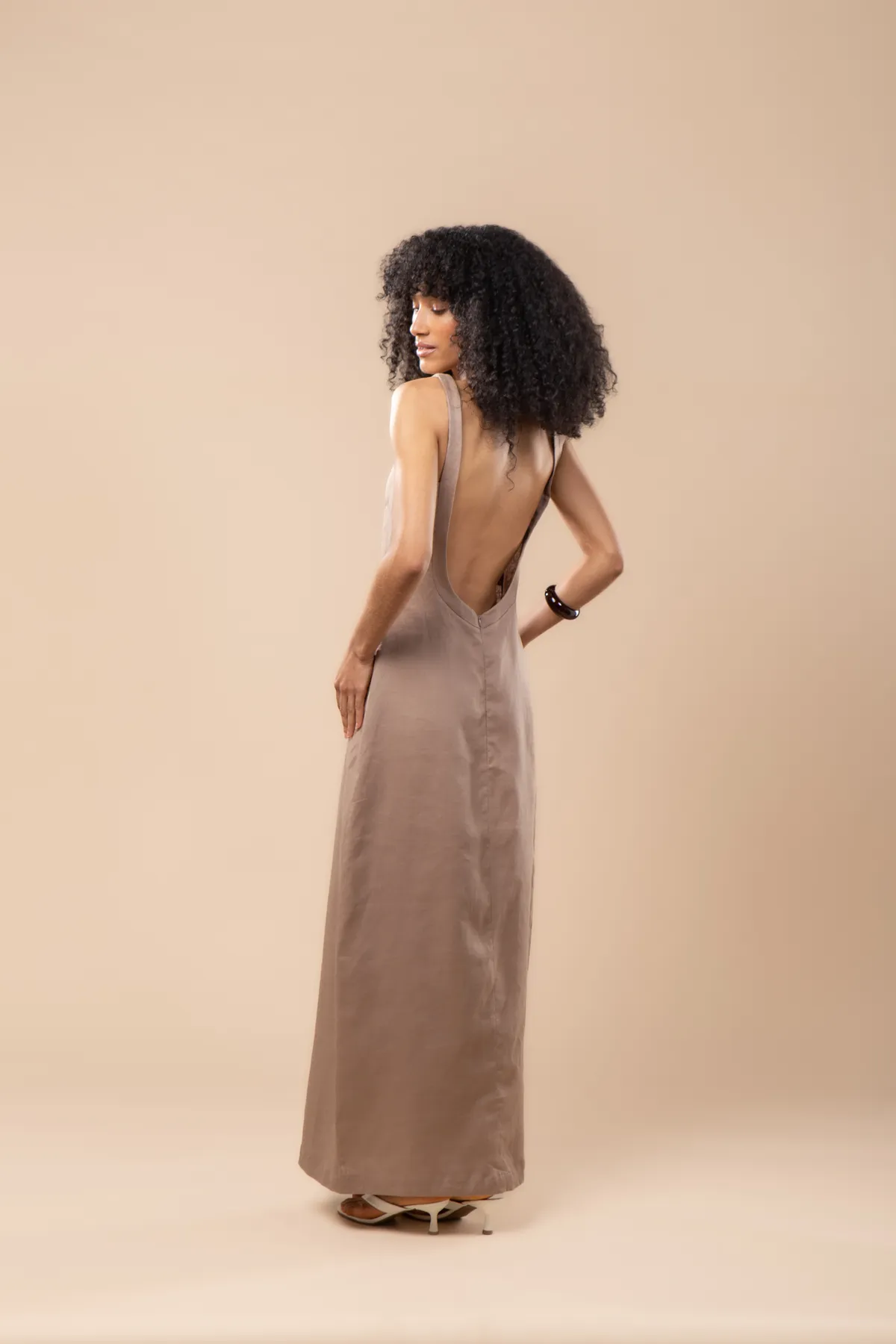 O Vestido Rita é longo, feito 100% em linho, unindo modernidade e conforto de forma natural. Modelagem reta e levemente acinturada, com decote aberto nas costas que proporciona todo o charme da peça. Fechamento em zíper invisível na parte de trás.